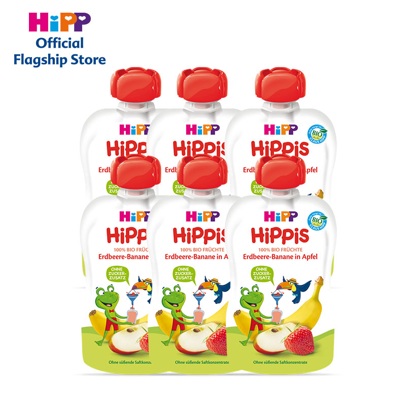 HiPP喜宝海外旗舰店HiPP喜宝进口苹果草莓香蕉有机婴幼儿宝宝水果泥吸吸乐*6袋装
