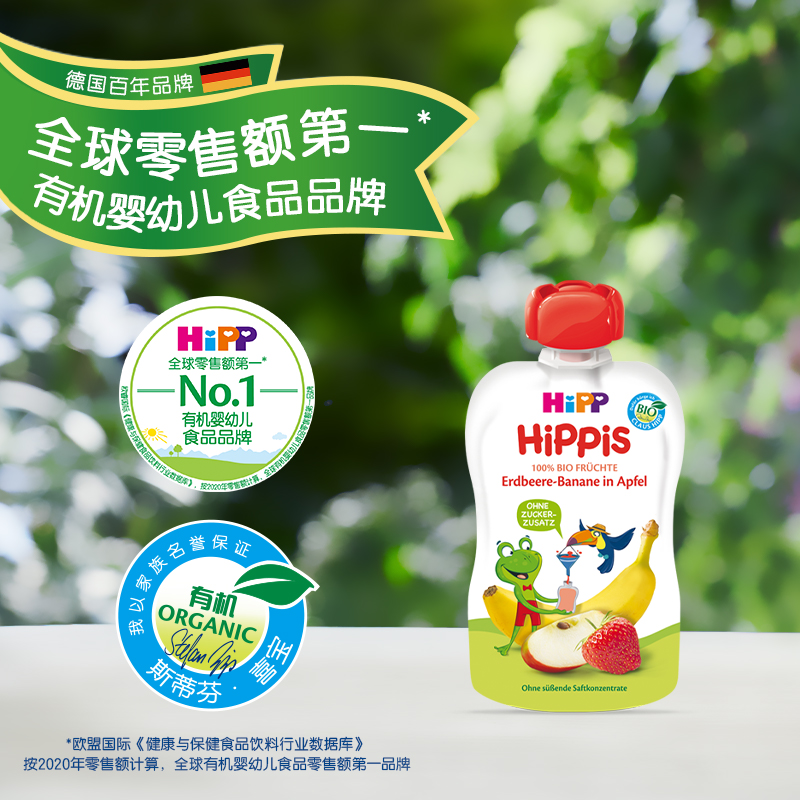 • HiPP喜宝海外旗舰店HiPP喜宝进口苹果草莓香蕉有机婴幼儿宝宝水果泥吸吸乐*6袋装12/4