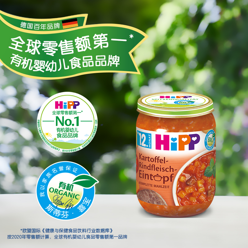 • HiPP喜宝海外旗舰店HiPP喜宝土豆炖牛肉辅食泥婴幼儿营养佐餐蔬菜肉泥250g12/4
