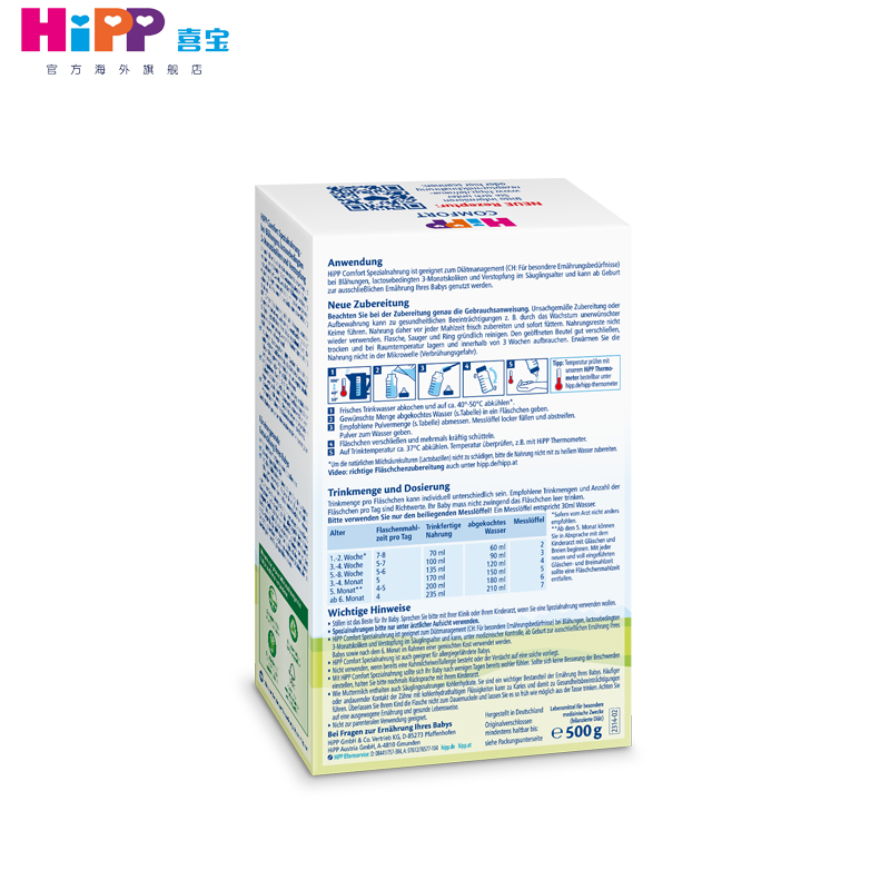 HiPP喜宝海外旗舰店HiPP喜宝Comfort舒适特殊配方奶粉防胀气部分水解新生儿适用进口